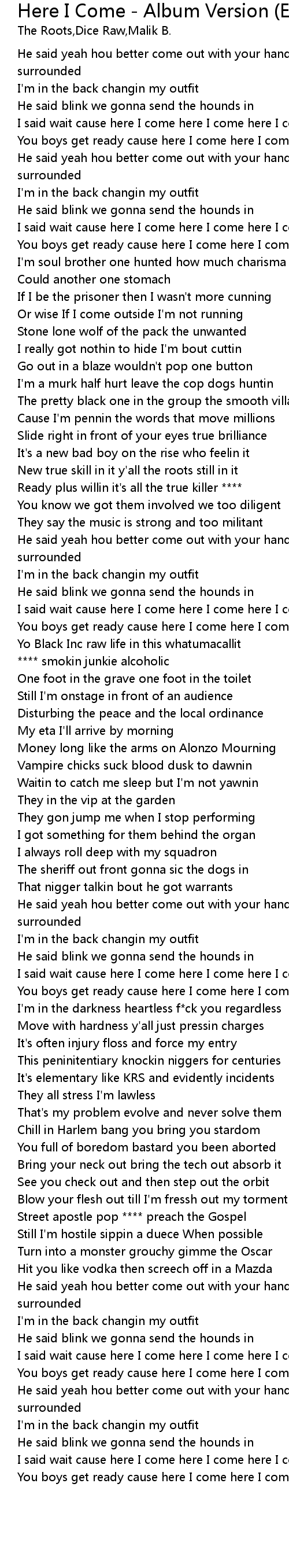 | [03:14.47] | You boys get ready cause here I come here I come here I come |