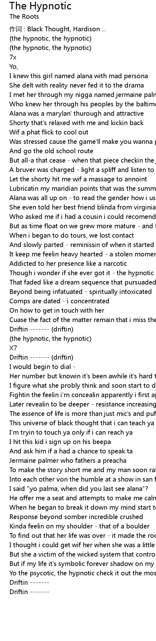 | Cuase the fact of the matter remain that i miss the hypnotic | |