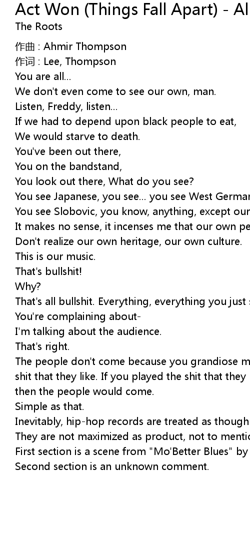 | Song | Act Won (Things Fall Apart) - Album Version (Explicit) |