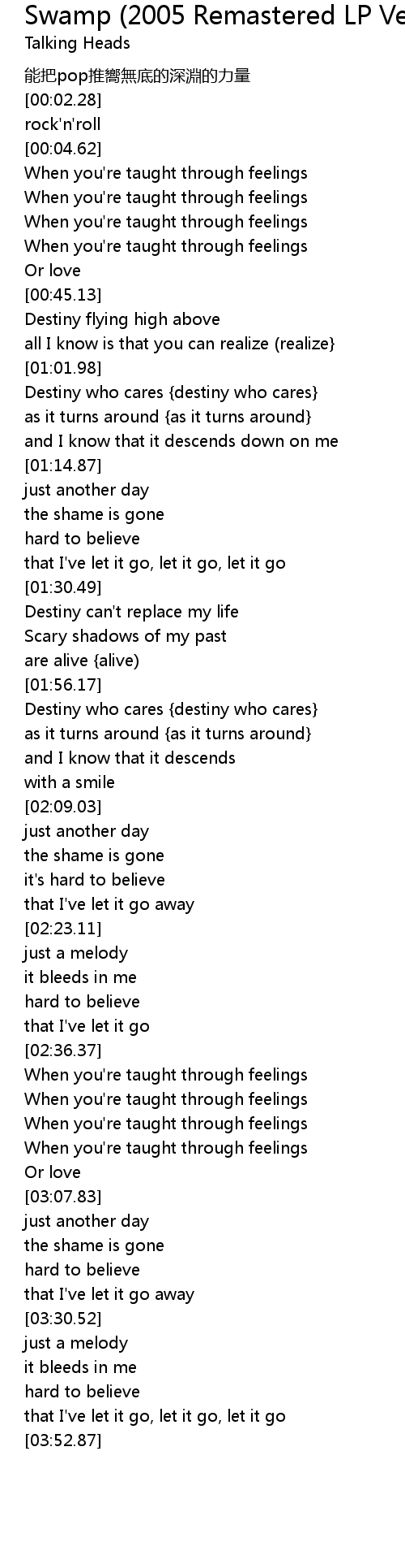 | [03:40.67] | that I've let it go, let it go, let it go |