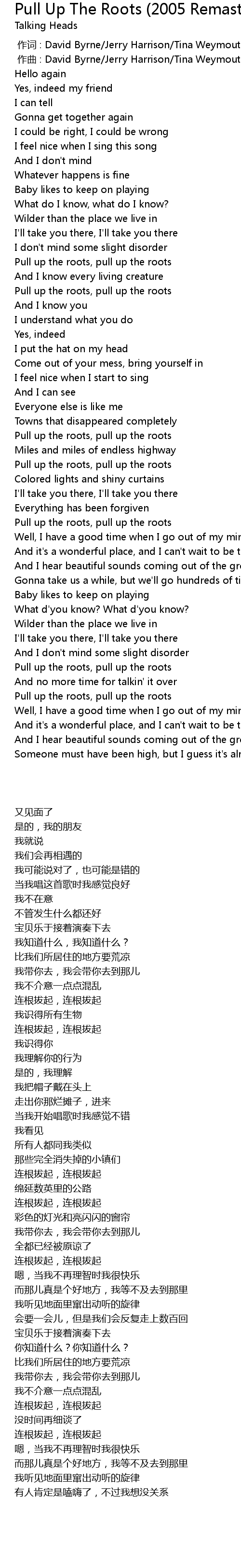 | [00:00.000] | zuò cí : David Byrne Jerry Harrison Tina Weymouth Chris Frantz |