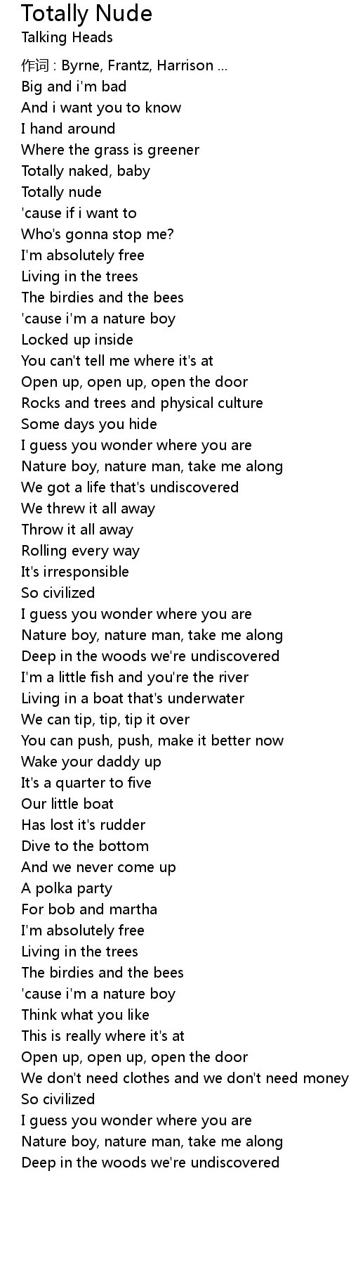 | Song | Totally Nude |