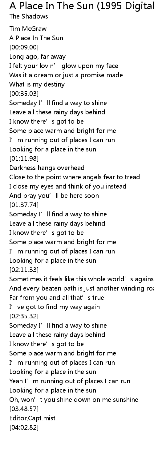 | [00:07.75] | A Place In The Sun |