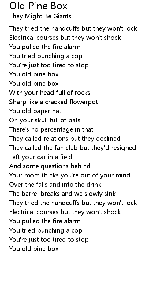 You old pine box |