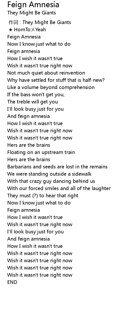 | [00:09.30] | Feign Amnesia |