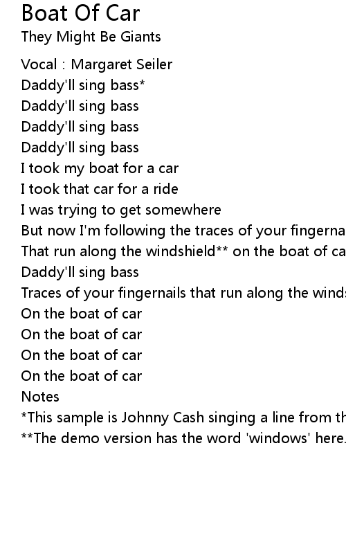 | Song | Boat Of Car |