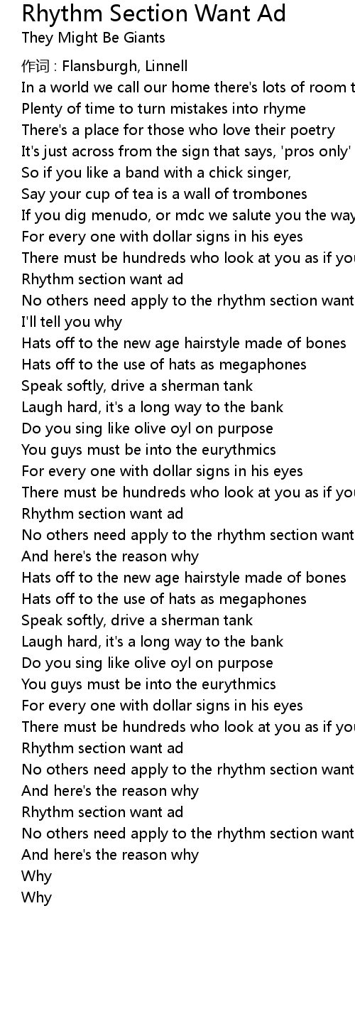| Rhythm section want ad | |