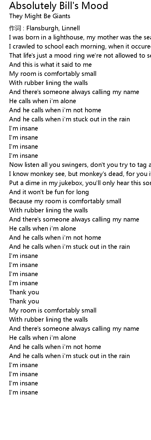 | Song | Absolutely Bill's Mood |