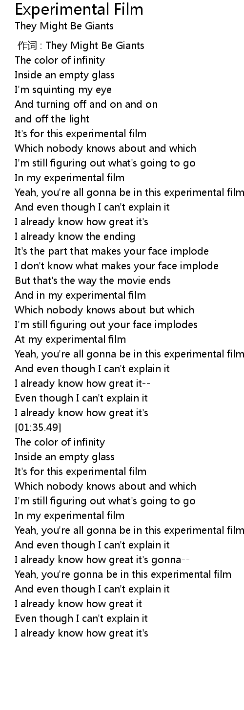 | [00:59.44] | And in my experimental film |