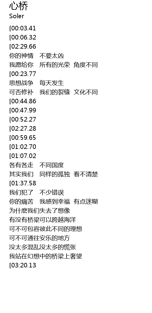 | [02:53.47] | 有没有桥梁可以跨越海洋 |