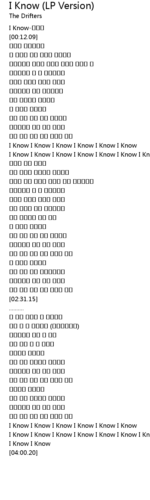 | [03:43.29] | I Know I Know I Know I Know I Know I Know I Know |