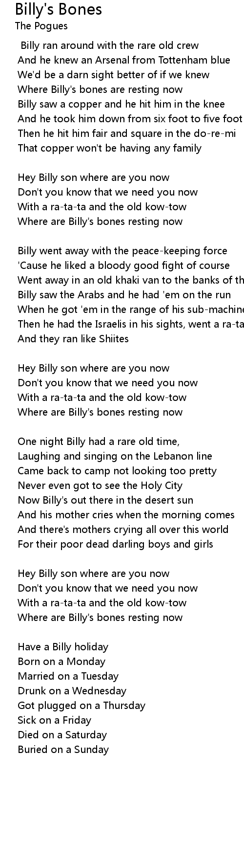 Where Billy's bones are resting now |