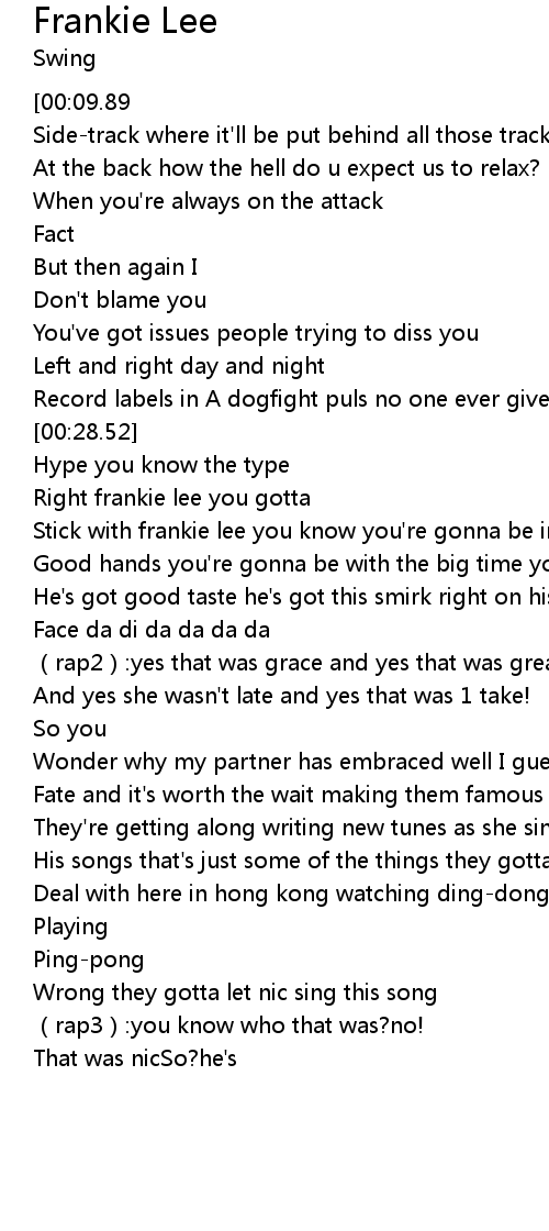 | [00:00.00][00:09.89] | (rap1):alright frankie lee don't tell me it's another |