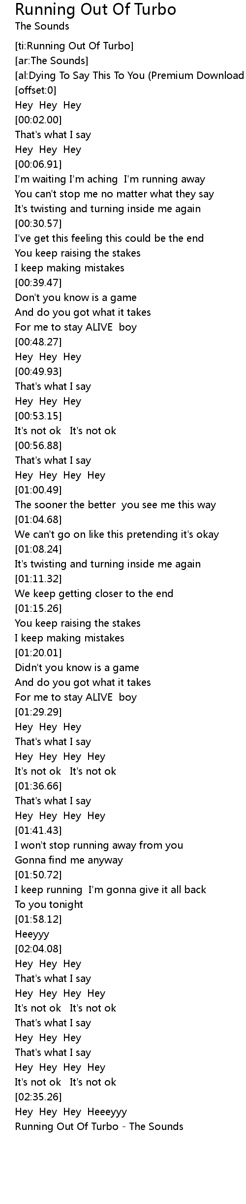 [ti:Running Out Of Turbo] |