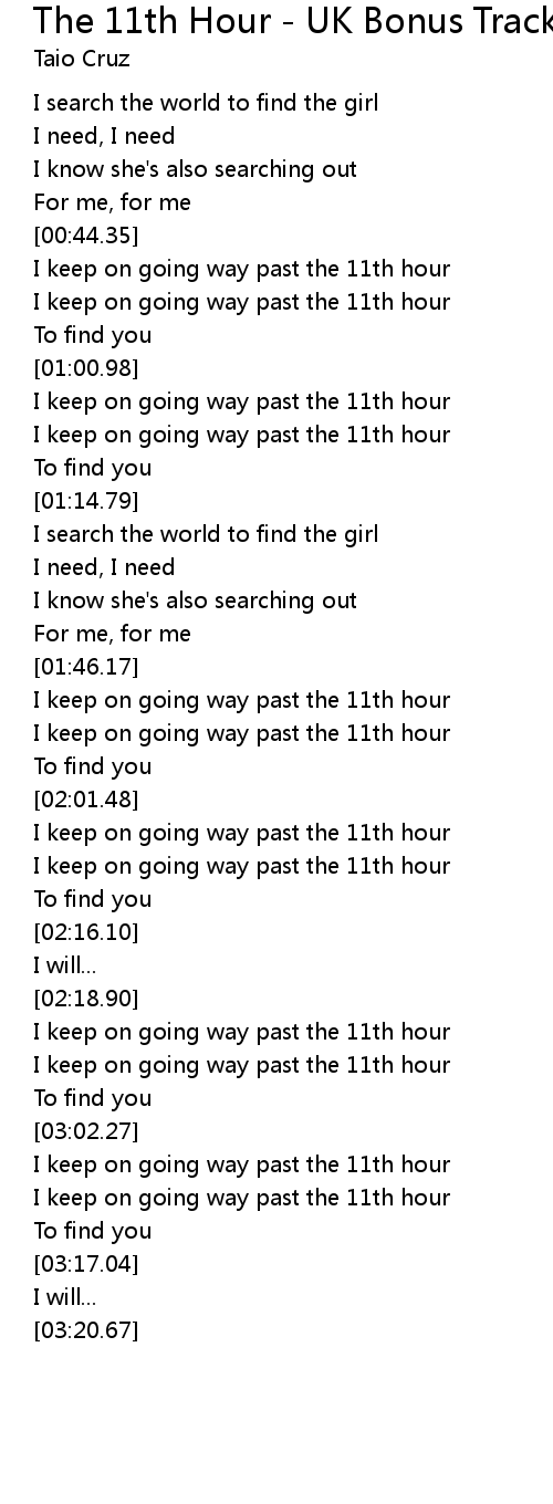 | [01:05.18] | I keep on going way past the 11th hour |