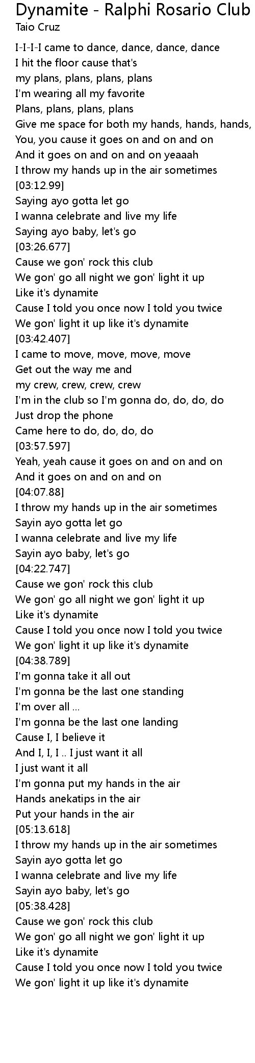 | [03:38.777] | We gon' light it up like it's dynamite |