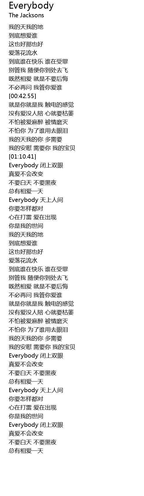 | [01:25.62] | Everybody 天上人间 |