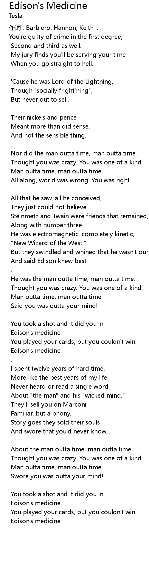 | Song | Edison's Medicine |