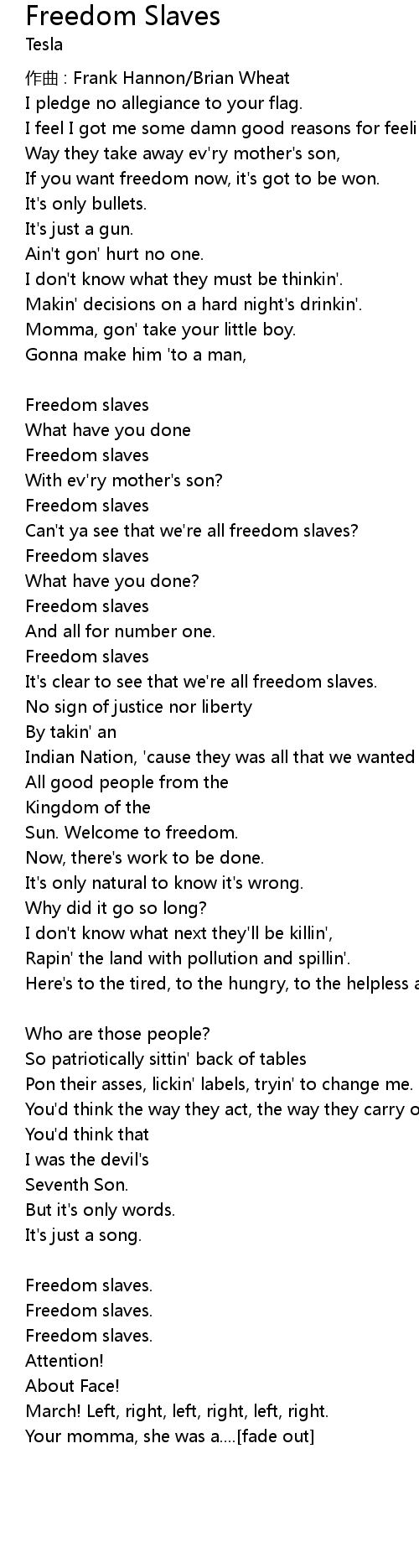 | Can' t ya see that we' re all freedom slaves? | |