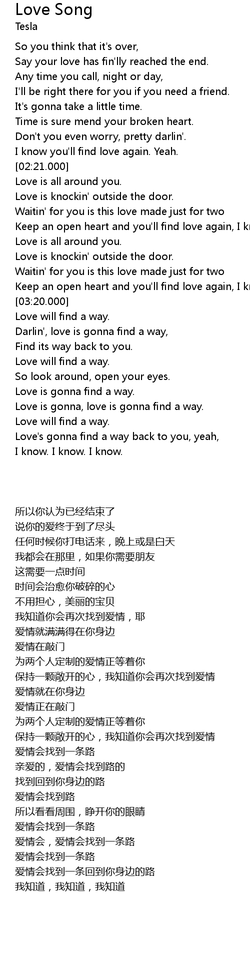 | [01:39.000] | Say your love has fin'lly reached the end. |