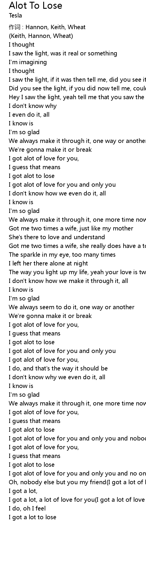 | 作词 : Hannon, Keith, Wheat | |