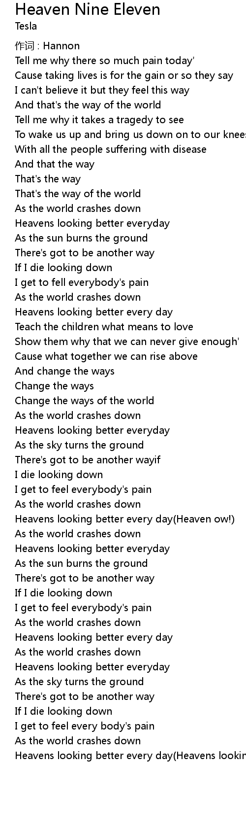 | Heavens looking better every day(Heavens looking better now) x3 |