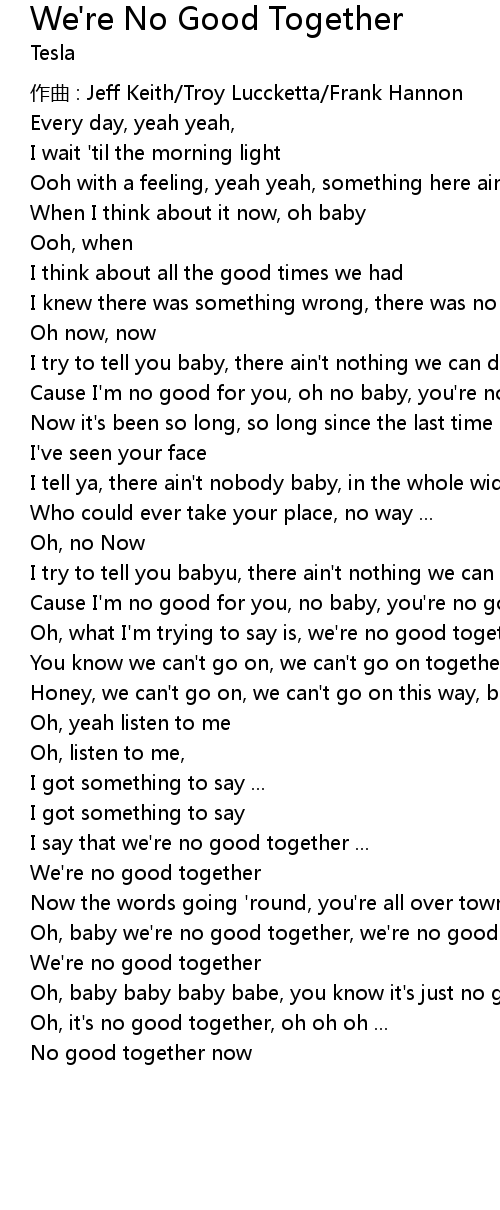 | Oh, baby we' re no good together, we' re no good together | |