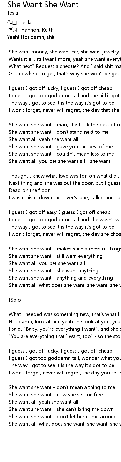 | Hot damn, look at her, yeah she look at you, yeah she was really hot | |