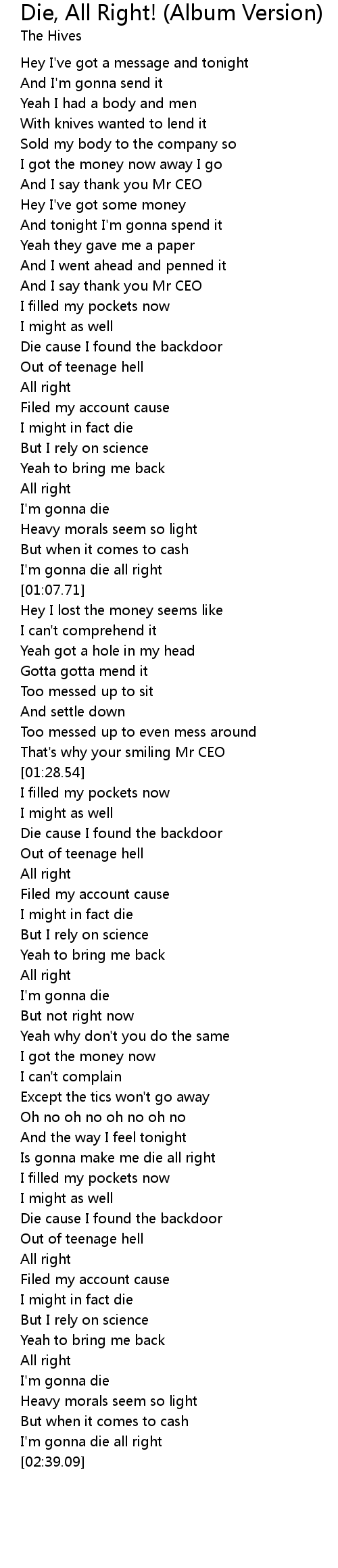I'm gonna die all right |