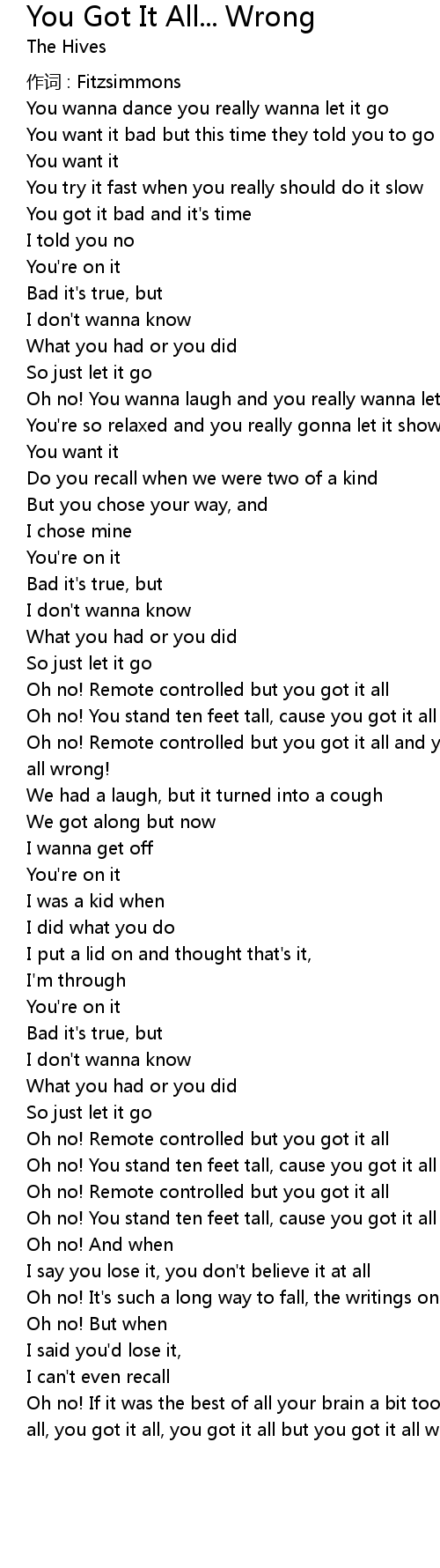 | Oh no! If it was the best of all your brain a bit too small because you got it all, you got it all, you got it all but you got it all wrong! |