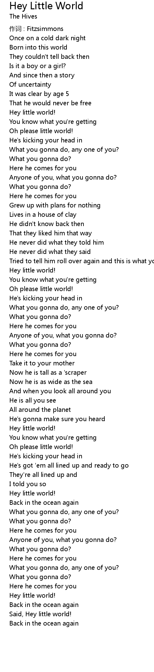 | Song | Hey Little World |