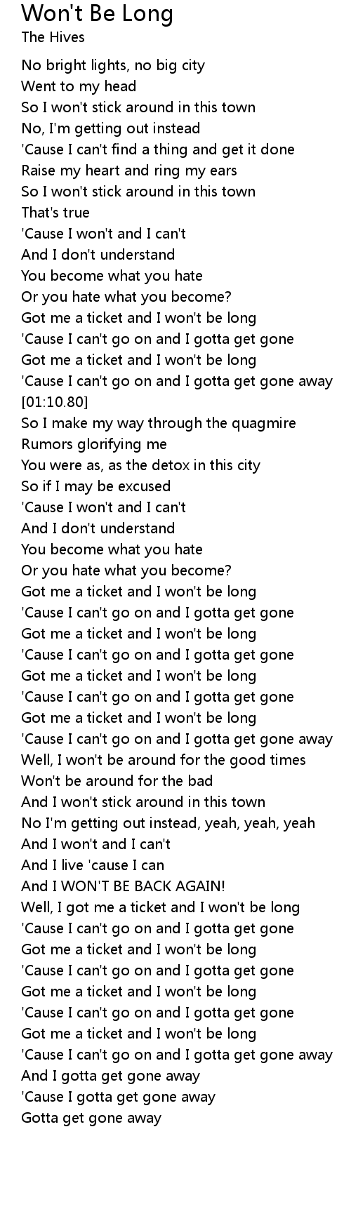 'Cause I can't go on and I gotta get gone away |