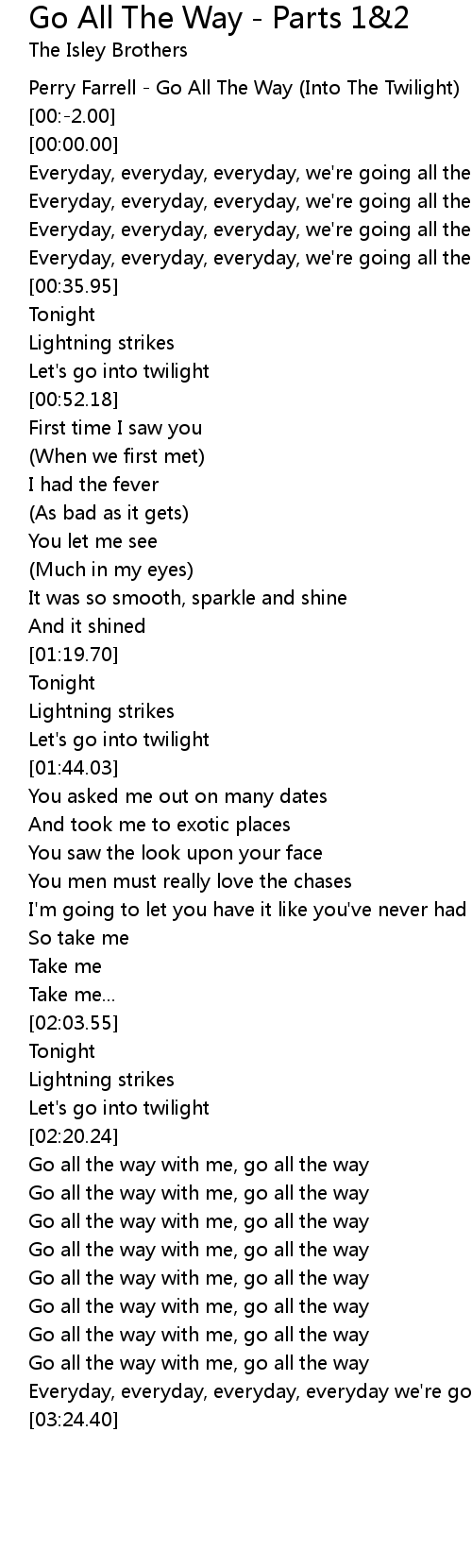 Go All The Way - Parts 1&2 Lyrics