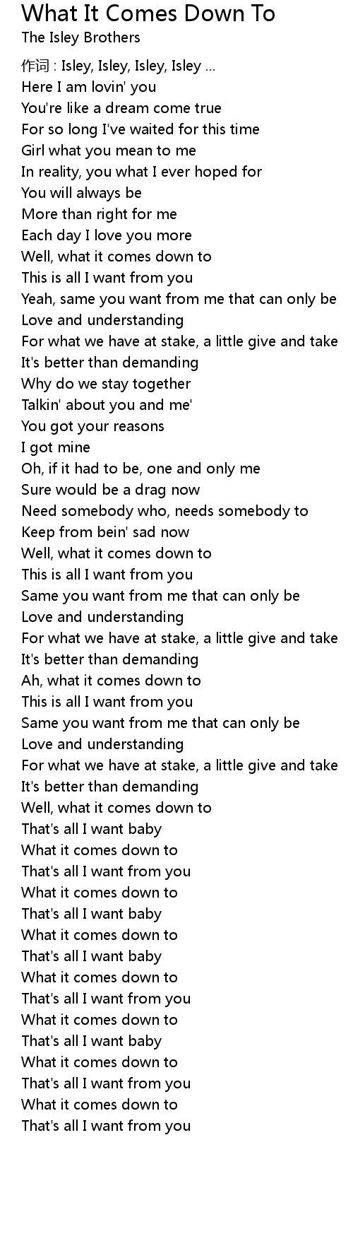 | Song | What It Comes Down To |