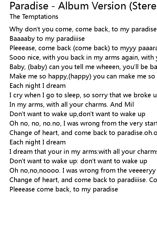 Pleeease, come back (come back) to myyy paaaradise, oh oh it would be |