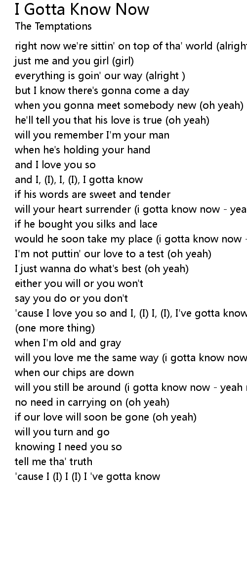 and I, (I), I, (I), I gotta know |