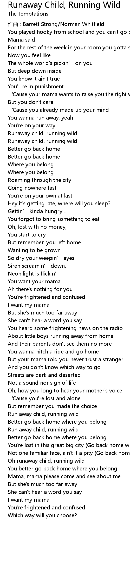 | Not one familiar face, ain' t it a pity Go back home where you belong | |