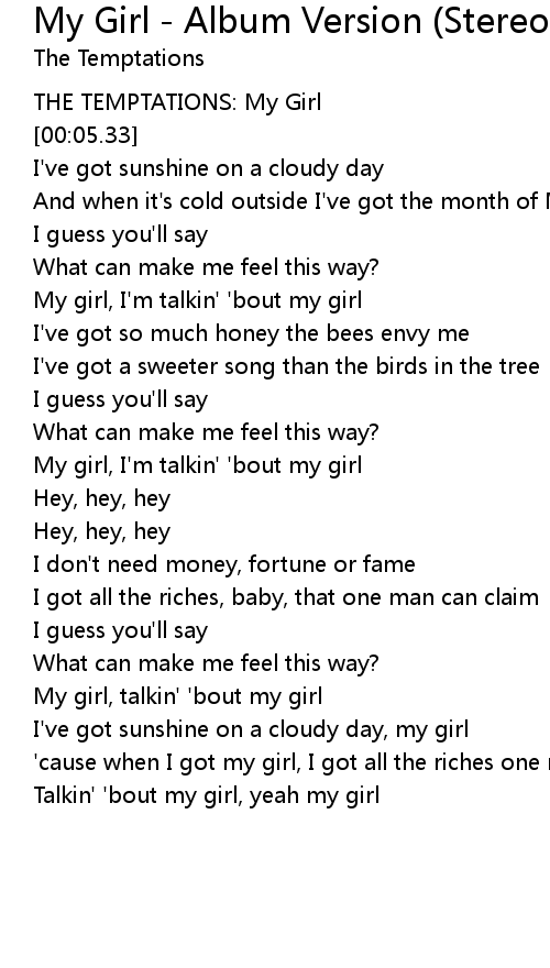 My girl, talkin' 'bout my girl |