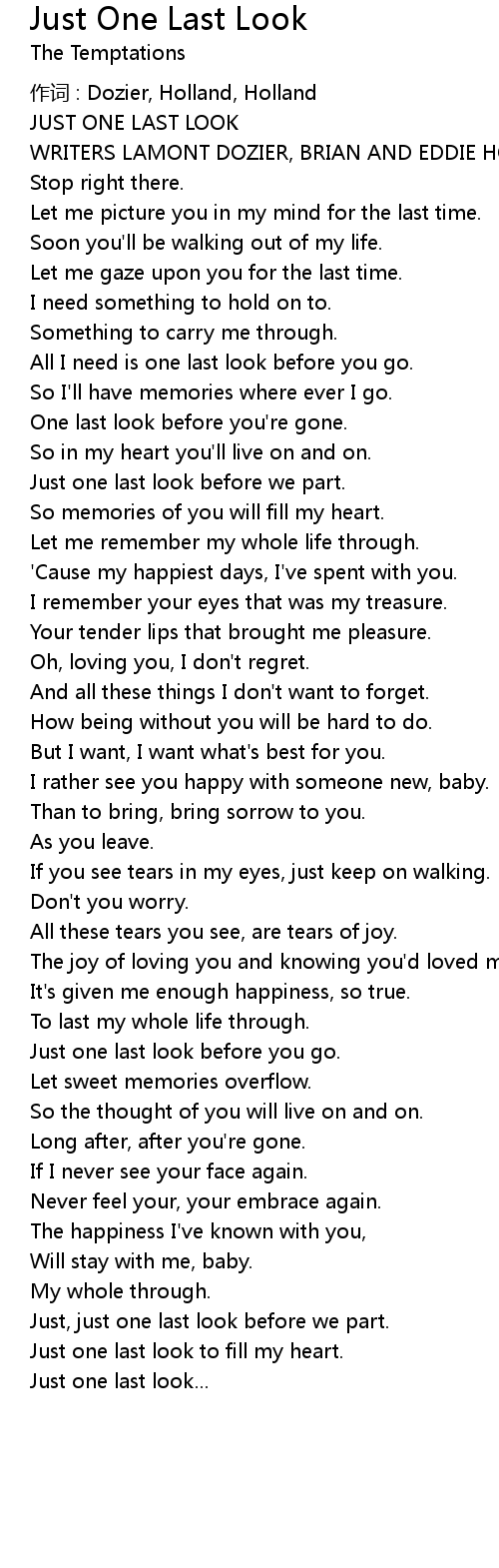 | All I need is one last look before you go. | |