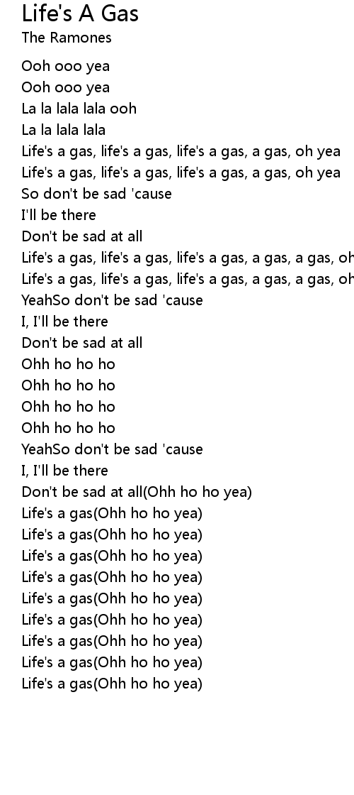 Life's a gas, life's a gas, life's a gas, a gas, a gas, oh yea |