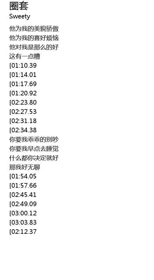 | [02:05.02][03:03.83][03:18.51] | 不如当初一个人的好 |