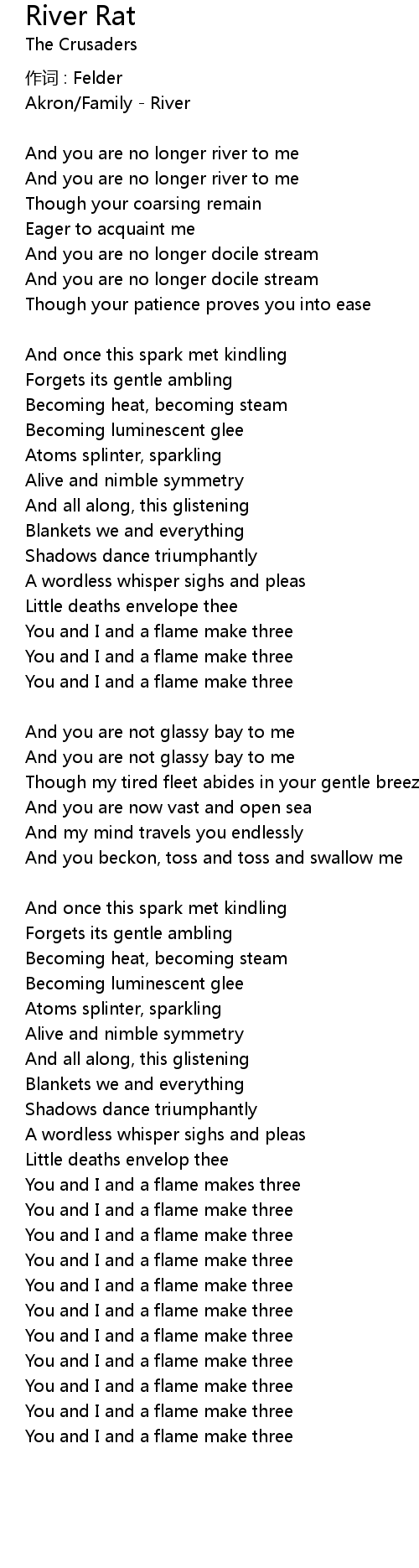 | And you are no longer river to me | |