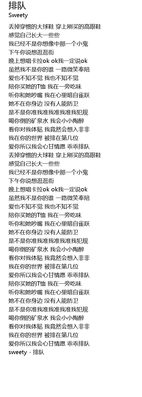 | [01:29.50] | 爱你所以我会心甘情愿 乖乖排队 |
