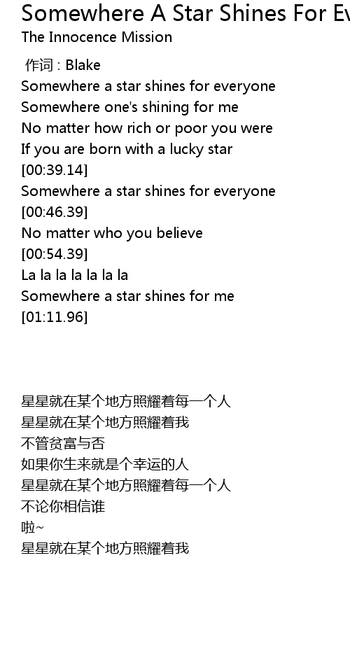 | [00:39.76] | Somewhere a star shines for everyone |