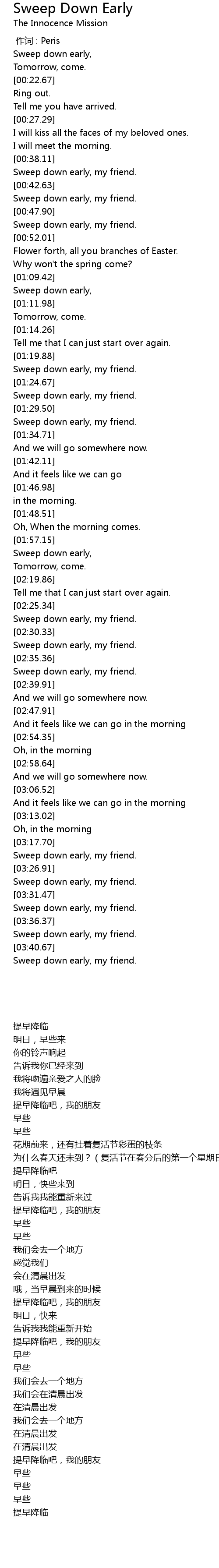 | [00:49.44] | Sweep down early, my friend. |
