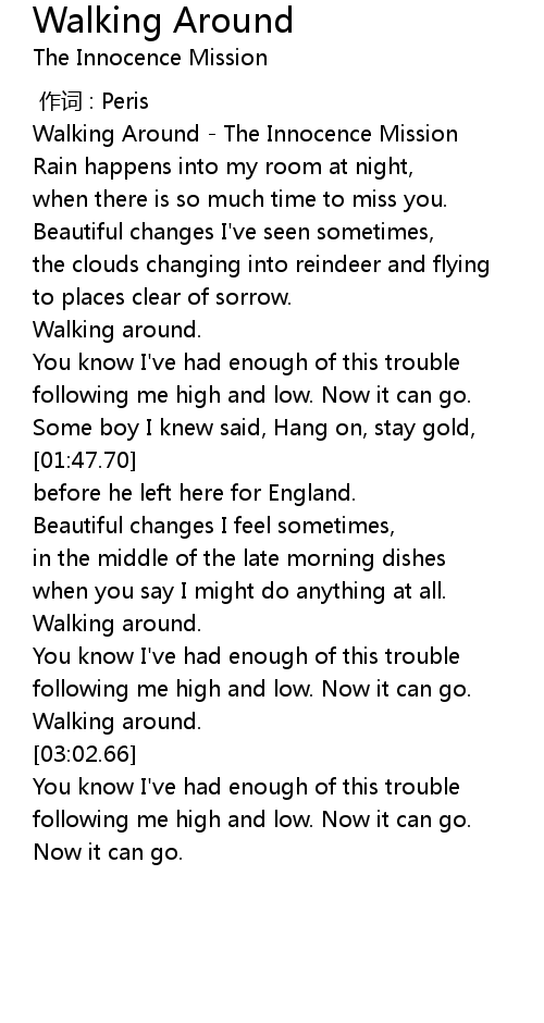 | [00:00.63] | Walking Around The Innocence Mission |