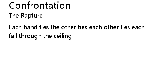 Each hand ties the other ties each other ties each other bending and bleeding we fall through the ceiling