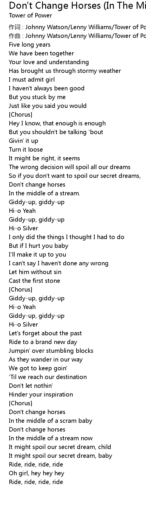 | Song | Don't Change Horses (In The Middle Of A Stream) (LP Version) |