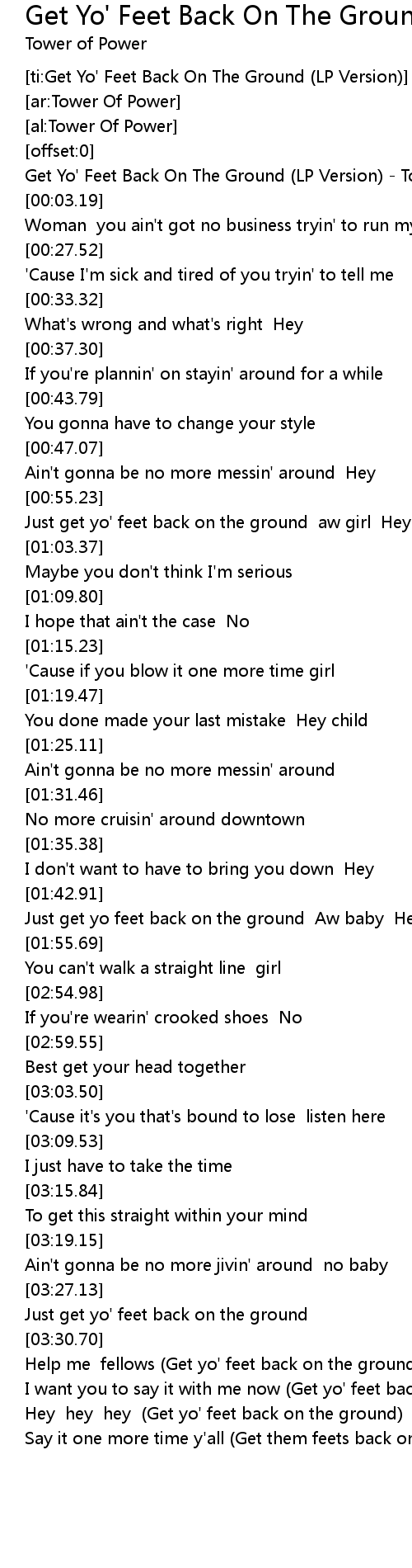 [ti:Get Yo' Feet Back On The Ground (LP Version)] |