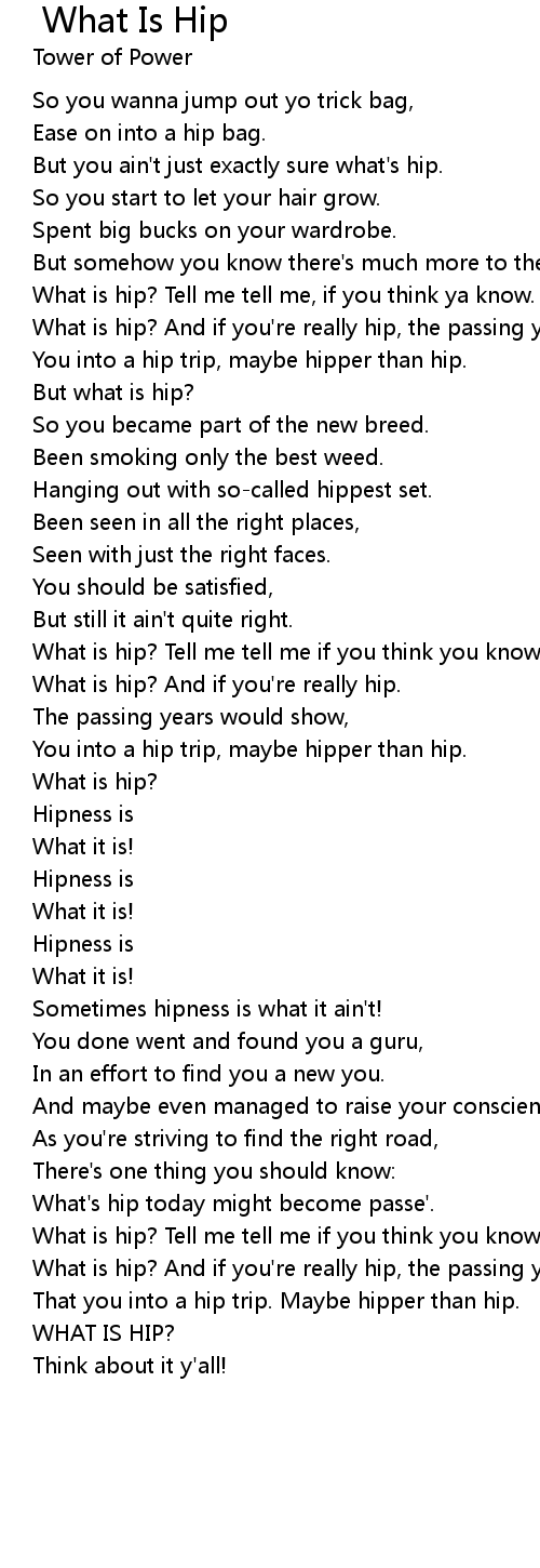 What is hip? And if you're really hip, the passing years will show, |